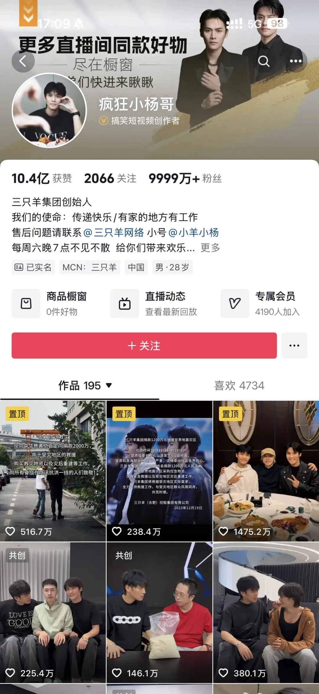 最新更新視頻是2024年8月3日,系大小楊哥和鴻星爾克總裁吳榮照合拍視頻。