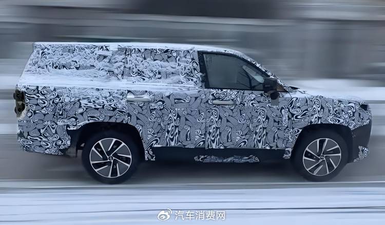 從諜照來看,該車側面相當修長,關鍵是三排車窗比二排車窗還長,基于此推測,這臺全尺寸SUV大概率是基于現有的皮卡打造而來。