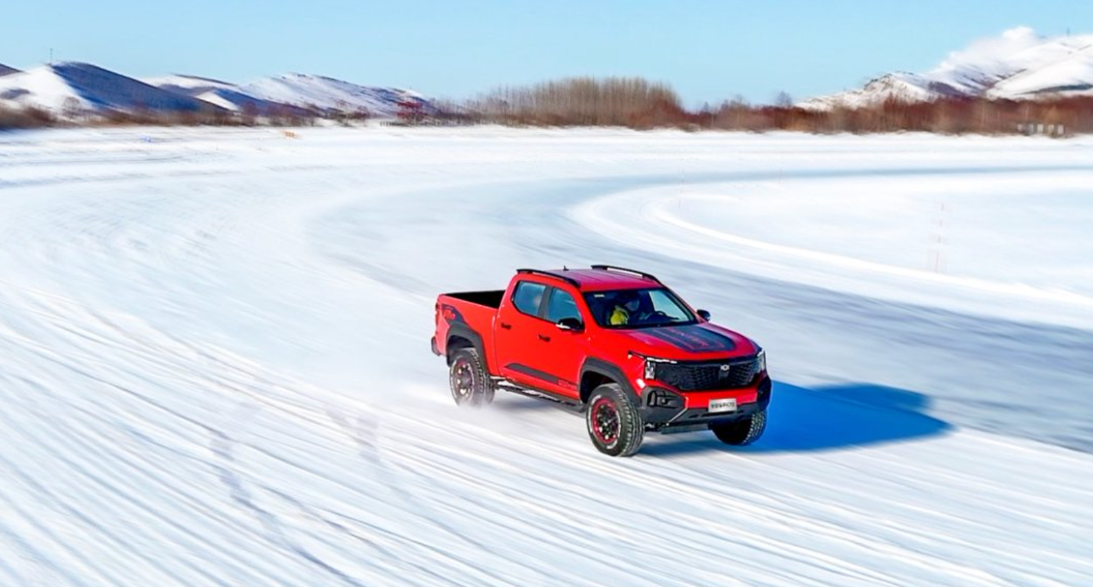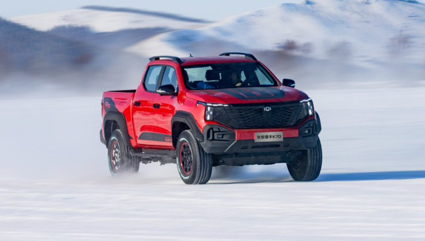 而為了測量長安獵手K70的操控穩定性,我們駕駛車輛進行雪環漂移,在覆蓋厚實積雪的環形賽道上,車輛以可控的側滑姿態穩定漂移。并且駕駛者能夠通過方向盤和油門輕松維持漂移角度。即便是新能源皮卡這樣的高重心車型,在雪地漂移過程中依然展現出了令人驚喜的車身姿態控制能力。